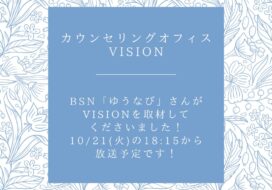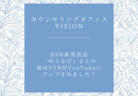 BSN「ゆうなび」さんがVISIONを取材してくださいました! 7〜8分のコーナーで、トラウマケアについて、VISIONについて、 NPO法人新潟トラウマ治療協会についてなどお話させて頂きました! 10/21(火)の18:15から放送(予定)です! (細かい時間は未定) ぜひご覧ください!